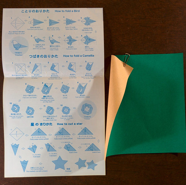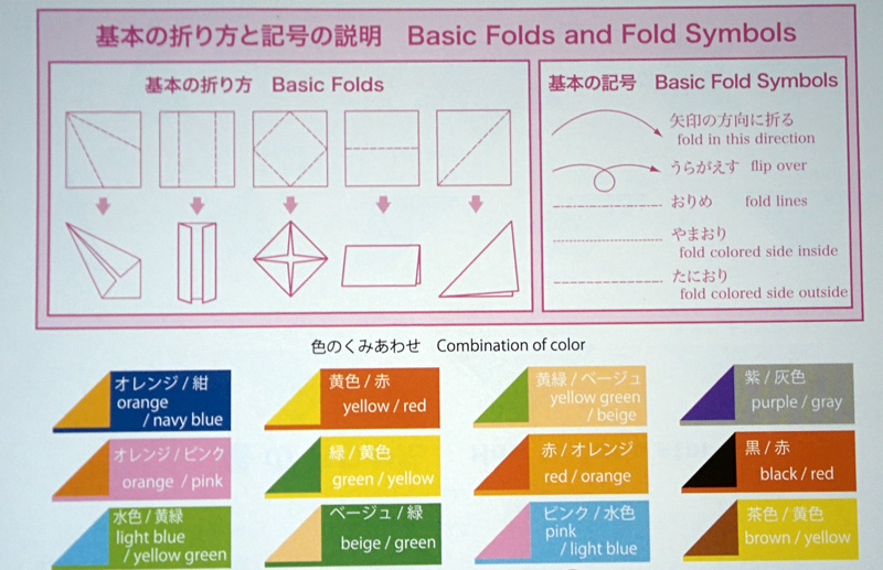 There are origami basics and instructions included as well as a list of color combinations. Click the thumbnails to enlarge the images.