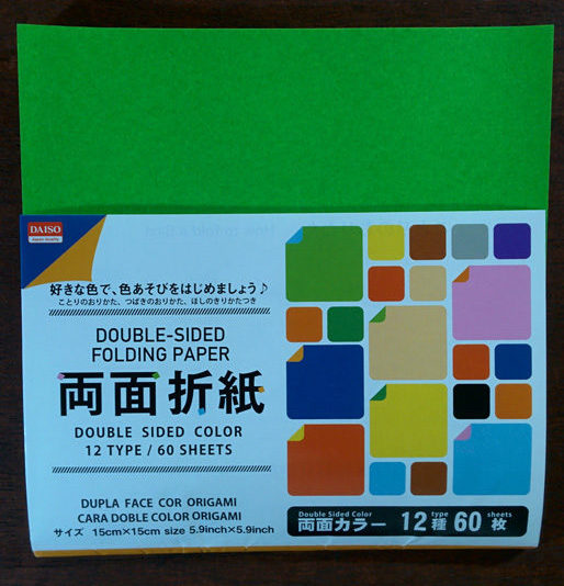 This is the only Japanese paper I got with no prints but it does have a color on both sides. Really find this nice for origami. Size is 5.9 x 5.9in. It has 12 color combinations and each has 5 sheets. Most of the paper in Daiso are only designed on one side. I have not seen this one in local stores yet. Been to Market! Market!, Robinsons Galleria, and South Park stores but haven’t seen them.