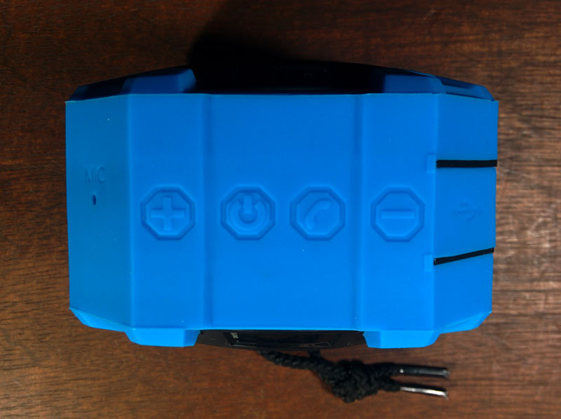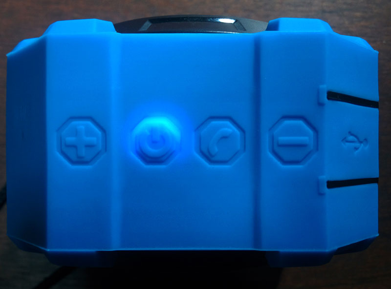 The top has all the buttons as well as the mic and USB charging slot. The slot is covered by a piece of the rubber case. So far the flap is sturdy and not showing any sign of tearing. The speaker can be held easily but it feels solid because of it’s weight.